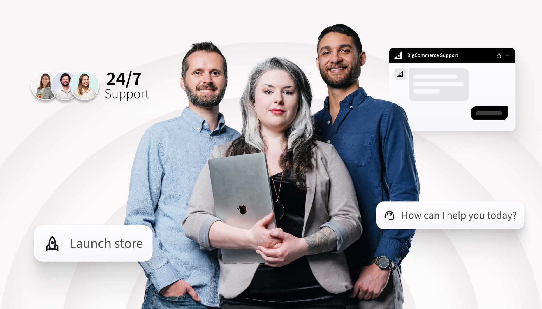 Obtenga la tranquilidad de saber que el soporte en tiempo real las 24 horas del día, los 7 días de la semana de los empleados de BigCommerce está a solo una llamada de distancia, y que los servicios de éxito, lanzamiento o migración están disponibles antes, durante y luego del lanzamiento.