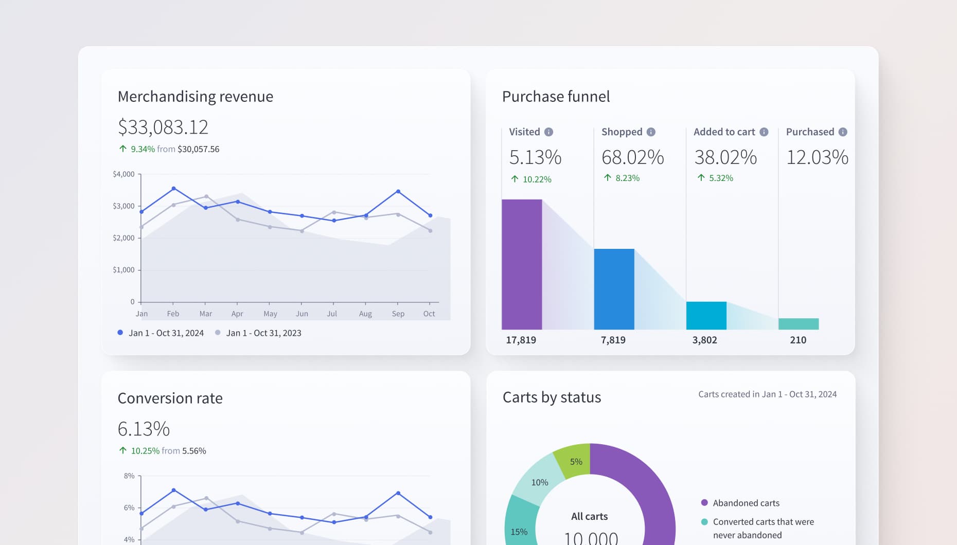 Nuestro producto Insights de comercio electrónico le permite identificar oportunidades más profundas directamente desde su panel de control sobre qué productos destacar, qué promociones están ayudando más a su negocio y a qué clientes debe dirigir para aumentar la lealtad. Insights simplifica sus análisis y permite tomar decisiones más rápidas que hacen crecer su negocio.