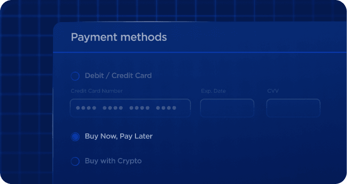Incluya la colocación dinámica de billeteras, compre ahora, pague después (BNPL) y criptomonedas para que los compradores tengan la mejor opción de compra al alcance de la mano.