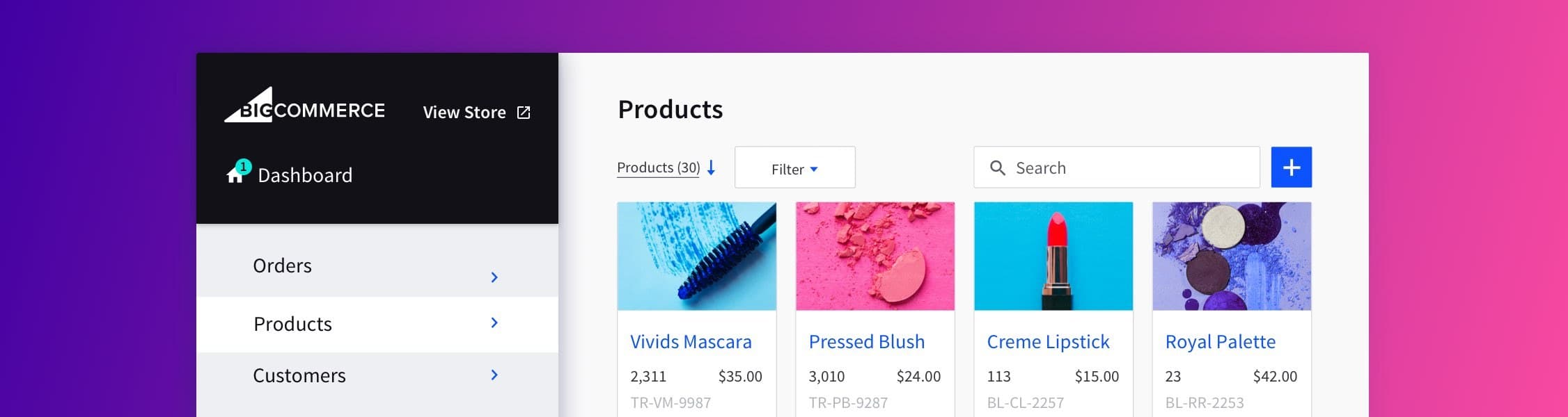 Administra todo tu catálogo de productos dentro del panel de control de BigCommerce o envíalo desde un sistema externo a través de la API del catálogo.